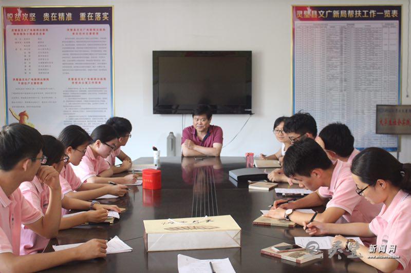 实践期间,他们先后在灵璧县文化局和旅游局开展了座谈会议。在与文化局副局长吴清雷的座谈中,从我县“三元文化”产业的发展历程和现状出发,到我县文化局在精准扶贫方面的具体措施,例如基础公共文化体系建设,送戏下乡等,对我县提供精神文化服务为重心的文化扶贫工作有了更多的了解。