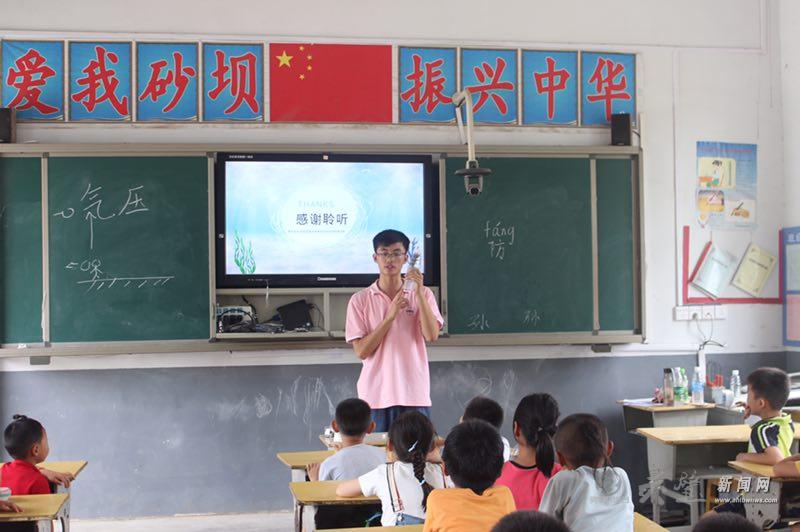 为深入切实了解我县精准扶贫开展情况,实践团队去到黄湾镇砂坝村,了解砂坝村村民的生活状况,同时宣传国家精准扶贫的政策以及2020年全面小康的决心,同时宣传了本县今年来在文化产业方面所做的工作,并从爱国教育、互动游戏、安全教育、科学实验四个环节在砂坝小学开展素质拓展教育课堂。