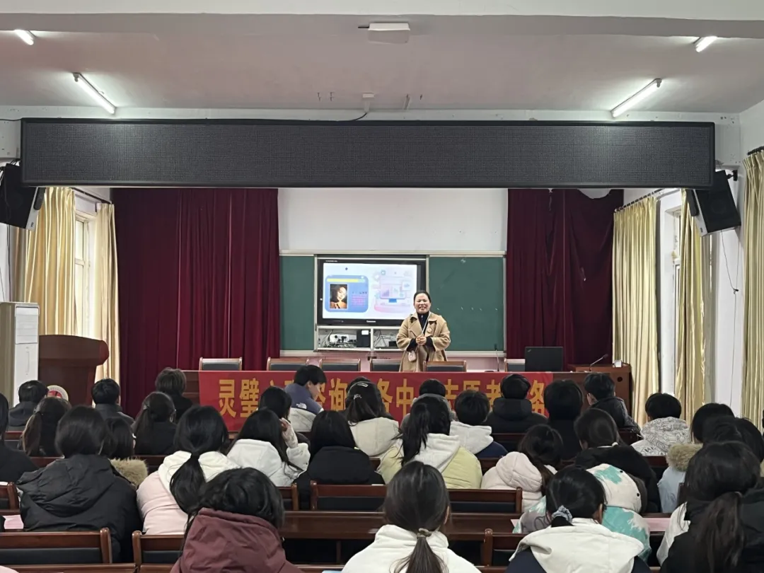 讲座中,志愿者老师结合中考备考场景,深入剖析了考前焦虑、睡眠困扰、注意力不集中等常见问题的成因,并分享了一系列可操作的减压技巧;同时重点强调了备考期间的身心安全防护,提醒同学们避免因过度熬夜引发健康风险,因学业压力产生冲动行为。