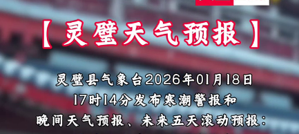 灵璧县气象台2026年01月18日17时14分发布寒潮警报和晚间天气预报、未来五天滚动预报